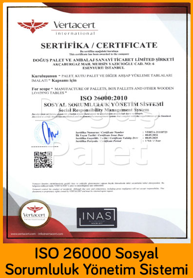 Doğuş Palet ve Ambalaj San. Tic. Ltd. Şti. - İşletme Lisans ve Sertifikaları